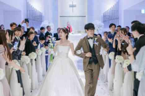 祝福の拍手とご新婦様手作りの「ハート×フェザーシャワー」で溢れる中、挙式は結びます。 緊張した表情のキリスト式でしたが、退場では沢山のゲストの皆様に囲まれて笑顔でいっぱいに…! 式場からのプレゼントのフェザーシャワーではご新郎様に羽がついてしまうサプライズも…! かわいらしい場面にゲストも思わずほっこり。