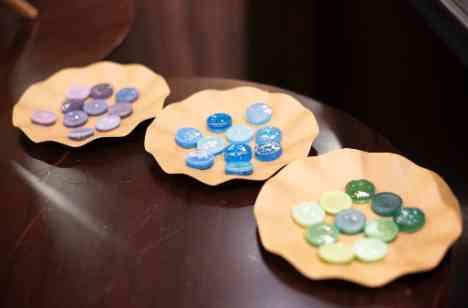 カジュアルに皆様と作り上げたいという想いから人前式に。受付にはひとつひとつがご新婦様手作りのレジンのピースが・・・。ゲストにドロップにしてもらって一緒に作成をしていただきます。一つ一つ色が異なるレジンのピースで皆様の思いの込められた結婚証明書を彩ります。 そして挙式では皆様の手で造り上げられた結婚証明書をチャペルでご披露! 世界に一つだけの証明書です。