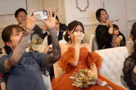 明るくノリが良くいつも面白さでいっぱいなご新郎様と、冷静にご新郎様にツッコむ優しさでいっぱいのご新婦様。そんな新郎様から披露宴終盤ではサプライズが。新婦様のこれまでの道のりをたどったサプライズムービー、そしてムービーを上映のあとは、扉から100本のバラを持ったご新郎様が登場!バラの花束100本の意味は「100%の愛」結びではご新婦様のお手紙朗読を。今までの人生を振り返り思わず涙が溢れます。