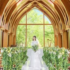 【光と緑に溢れたぬくもりの木のチャペル・水辺のリゾートチャペル・白亜の独立教会】ハープやバイオリンの生演奏とゲスト全員に見守ってもらえるチャペルが感動的なセレモニーを演出します。※100名着席可能