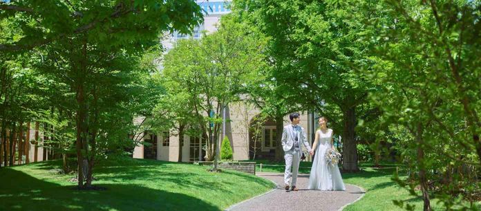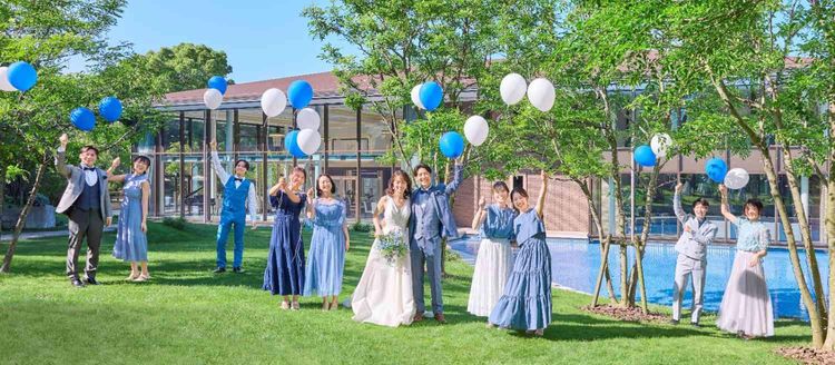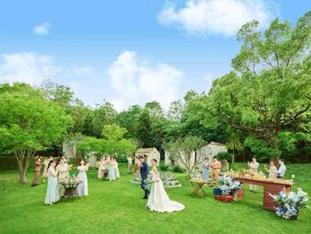 ガーデンやテラスを使用して青空の下、ゲストと共に記念撮影を撮ることもできる