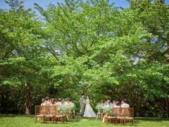 緑に囲まれたガーデンで執り行う挙式は、青空の下で自然の美しさを感じながら特別なひとときを過ごせるのが魅力です。心地よい風が吹き抜ける開放的な空間で、爽やかな自然の中でのセレモニーが思い出をより特別なものにします。