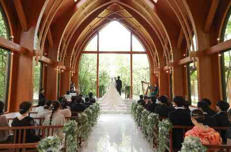ホームページで挙式会場のサンタムールを見た時から素敵だと思っていましたが、最初に見学に伺った際に「こんな素敵な空間で挙式をあげたい」と一目惚れしました。木造の温かい空間、優しく光が差し込む空間、もし雨が降っても中からは気にならないという点が気に入って選びました。とくにこだわったことはありませんが、当日は運良く晴天で日の光も優しく入り込んでくれてより心晴れやかに挙式を行うことができました。