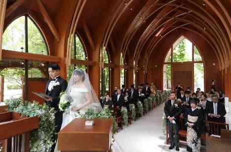 ホームページで挙式会場のサンタムールを見た時から素敵だと思っていましたが、最初に見学に伺った際に「こんな素敵な空間で挙式をあげたい」と一目惚れしました。木造の温かい空間、優しく光が差し込む空間、もし雨が降っても中からは気にならないという点が気に入って選びました。とくにこだわったことはありませんが、当日は運良く晴天で日の光も優しく入り込んでくれてより心晴れやかに挙式を行うことができました。