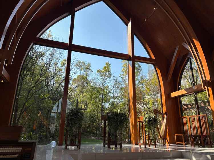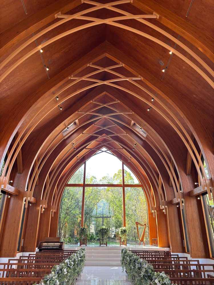 緑がある感じが良かった。 木のチャペルは雰囲気が好き。 住宅街の中にあるため、非日常感は薄れる。