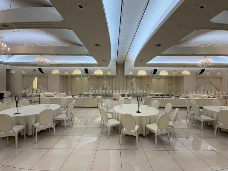施設の中は周辺の下町の雰囲気とは異なり上品な大聖堂と華やかな披露宴会場で良かった。クロスや花装飾次第で求めるどんな雰囲気にも対応できそうだった。