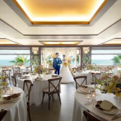 【絶景のオーシャンビューチャペル】約360度自然光が差し込む明るいチャペルで特別な誓いを。どこまでも続く水平線の絶景がドレス姿をより美しく演出。空と海のコントラストはゲスト誰もが憧れる挙式を実現させます
