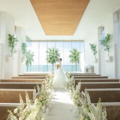【絶景のオーシャンビューチャペル】約360度自然光が差し込む明るいチャペルで特別な誓いを。どこまでも続く水平線の絶景がドレス姿をより美しく演出。空と海のコントラストはゲスト誰もが憧れる挙式を実現させます