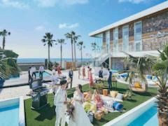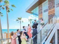 オーシャンビューを眺められるスポットとして、青い海、青い空を すぐそばに感じて、開放的なロケーションをバックにご利用いただけます。結婚式当日には、ゲストの皆様と海をバックに写真撮影をしたり、集合写真のスポットとしてもご利用いただけます。