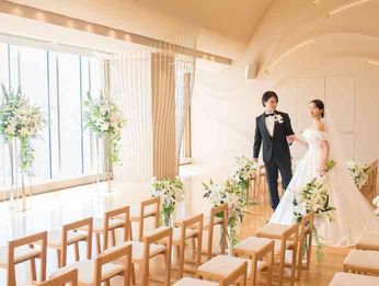遮るものの無い眺望と、日の光が燦々と差し込む明るいチャペルです。 名古屋港まで見渡せる抜群の開放感は唯一無二の印象に。 おふたりが誓う最幸の場所だからこそ自然体で、そして上質な雰囲気の中でセレモニーをお楽しみいただけます。
