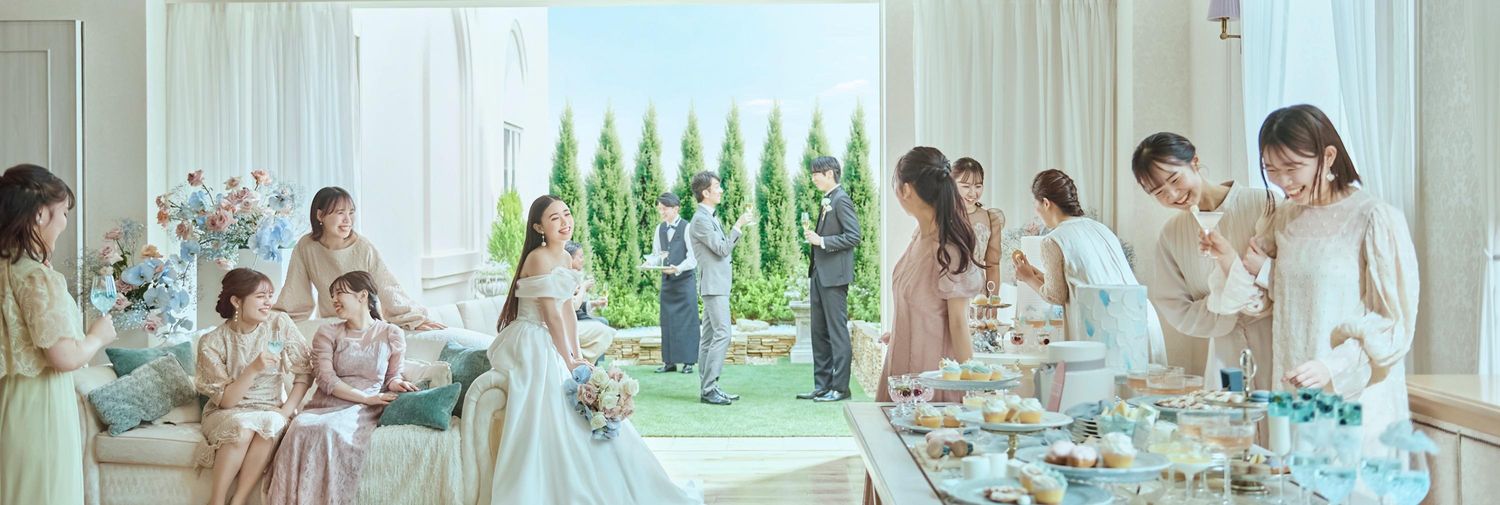 ウェルカムパーティ専用ルームではドリンクやカナッペと共にゲストをおもてなし。ご披露宴前からアットホームにお過ごしいただけます。