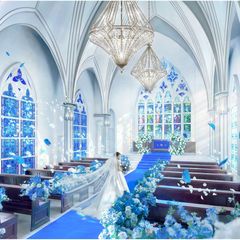 《県内最大級★圧巻の規模を誇る大聖堂を見学★》◆神秘的なブルーのステンドグラス×ドレスが映える神聖な青のバージンロード◆\全天候型アトリウム完備★/365日晴れが叶う♪天気に左右されない挙式演出を体験