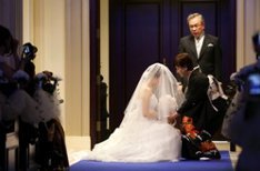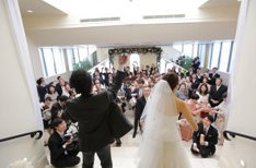 母からのベールダウンを受け、父と祭壇へ向かうシーンが印象に残っています。『バージンロードを歩きたい』と話していた父の夢が叶うと思うと、涙が止まりませんでした。バージンロードは人生を表すとプランナーさんに教えていただきました。家族との思い出を振り返りながら一歩一歩たいせつに歩きました。退場前には、会場オリジナル演出の「両親への言葉」で感謝を伝える事ができて、私も嬉しかったです。