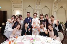 「春祭り」をテーマに、和装に合わせたぼんぼり風の花珠や、 ドレスに合わせた彩りの花のアレンジなど、春らしさが満載の会場にしました。打ち合わせで何度もフラワーコーディネーターの方がイメージを提案してくれたおかげです。お色直しは和装!フォトラウンドをしてゲストと触れ合ったり、両親にサプライズをしたりと賑やかなパーティになりました。