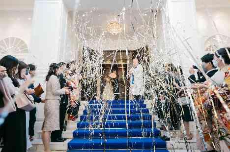 感動的な挙式を終えた後は、フラワーシャワー。 感動のお時間からは開放的かつアットホームなお時間。 盛大なサプライズをゲストにプレゼント☆ 巨大クラッカーを発射し、ゲストのテンションを最高潮に!!これからはじまるクリスマスパーティーをよりお楽しみいただけるように、ひとつひとつのシーンにもサプライズを仕掛けました!!