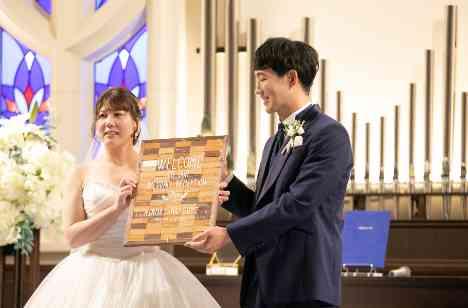 「みんなに囲まれたアットホームな挙式にしたい」 「人前式でオリジナルの内容に執り行いたい」と人前式を選んだおふたり。 ゲストの方にご参加をいただいたウエディングツリー。おふたりが最後の仕上げをし 世界に一つしかない記念品の完成。ゲストもお喜びになる表情が印象的でした。 おふたりの目指す、涙だけでなくほっこりとするアットホームな挙式となりました。