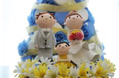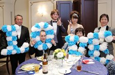 ウェディングケーキのプレートにはおふたりと1歳のお子様のお名前も入れたものをご用意。中座中にはおふたりとお子様の生い立ちを紹介した手作りムービーの上映を行ないゲストの皆様に大好評でした。さらにご列席のお子様にもご参加いただけるようにと、甥っこのおふたりと手をつないでの再入場や手作りのフォトフロップスでゲストの皆様と記念撮影で会場には笑顔があふれました。