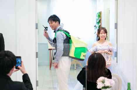 お色直しの再入場では、ご新郎様がビールサーバーを背負ってみなさまへおもてなし。登場時には一斉ににカメラが向けられ、ゲストのみなさまへ感謝の気持ちを込めてお酌回り。会場内も笑顔と笑いであふれていました!普段なかなか会えない友人や、今日の日を楽しみにしてくれていたご親族様へ感謝の気持ちを伝えることができるサプライズ演出です!