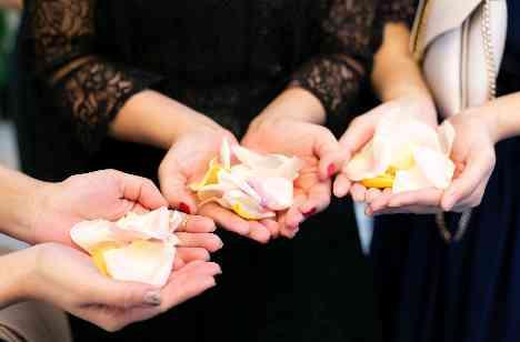 挙式が終わった後に、ゲスト様からご新郎ご新婦様にお祝いの気持ちを込めて投げる"フラワーシャワー"おふたりはここでも世界観をだしたいと、大好きなキャラクターの形をしたコンフェッティをご用意!それを手にしたゲスト様も「あっ!」という表情で盛り上がっていました。おふたりが扉から入場すると「おめでとう!」の言葉ときらきらした笑顔で会場中があふれかえってました!