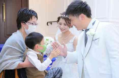 挙式セレモニーではご新婦様の姪っ子ちゃん、甥っ子くんに結婚指輪を運んでもらうリングガール・リングボーイに任命!一生懸命指輪を運ぶ姿に挙式会場の厳粛な雰囲気も一気になごやかムードに♪無事におふたりに指輪を運び届け、大役をこなしたお子様たちはご新郎ご新婦様と「やったね!」とハイタッチを交わしていました!