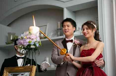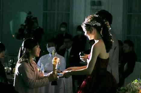 会場が幻想的な雰囲気になる「キャンドルサービス」テーブルラウンドでは"ゲスト様の幸せを祈り、感謝を伝える"という意味があります。大好きな皆様に見守られながら火を灯し周り、最後には"新しい家族の誕生”を意味するメインキャンドルへ点火。ゆらゆらと綺麗に灯る素敵な空間に皆様うっとりとお過ごしされていました。