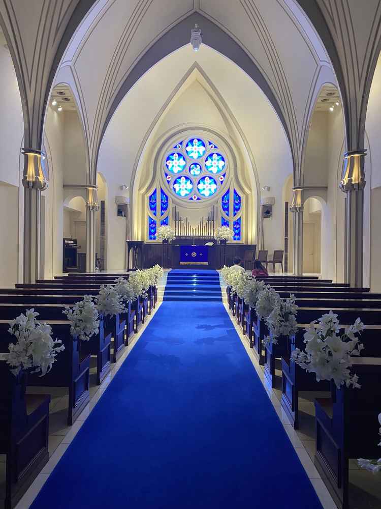 ウェディングドレスが映える ロイヤルブルーのチャペル