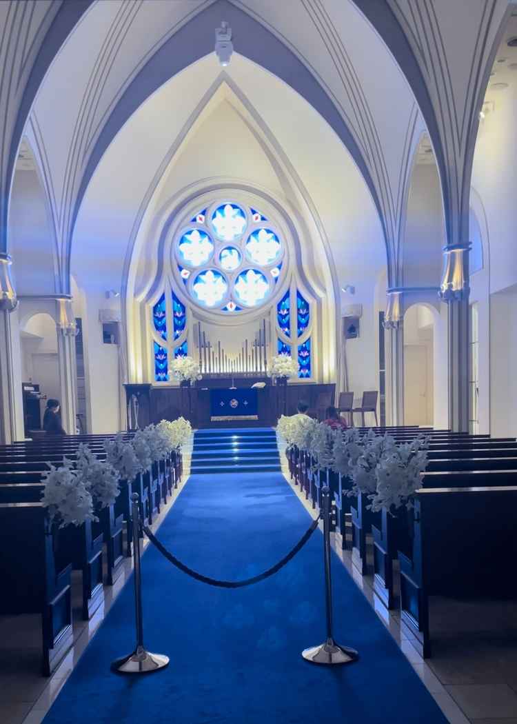 ウェディングドレスが映える ロイヤルブルーのチャペル