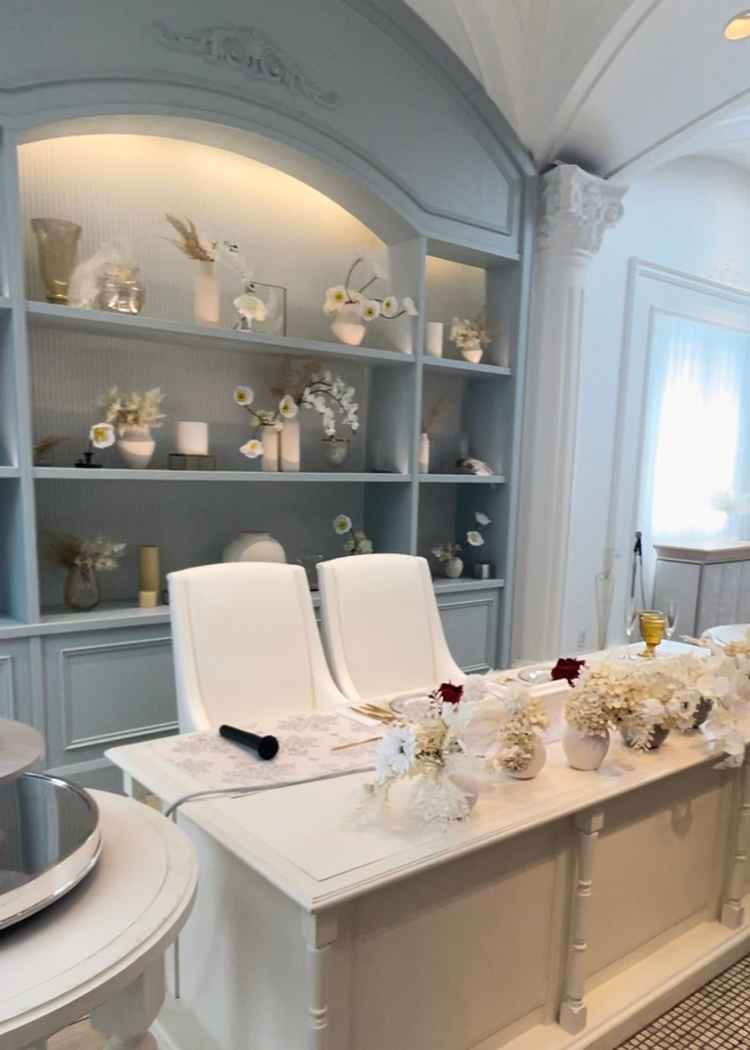 リュクス ボヌールの白と水色の会場が2人の好みにぴったりでした。 コーディネートや衣装を合わせて考えるのも楽しみです。