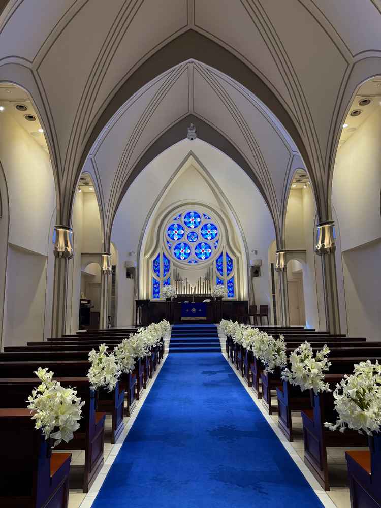ウェディングドレスが映える ロイヤルブルーのチャペル