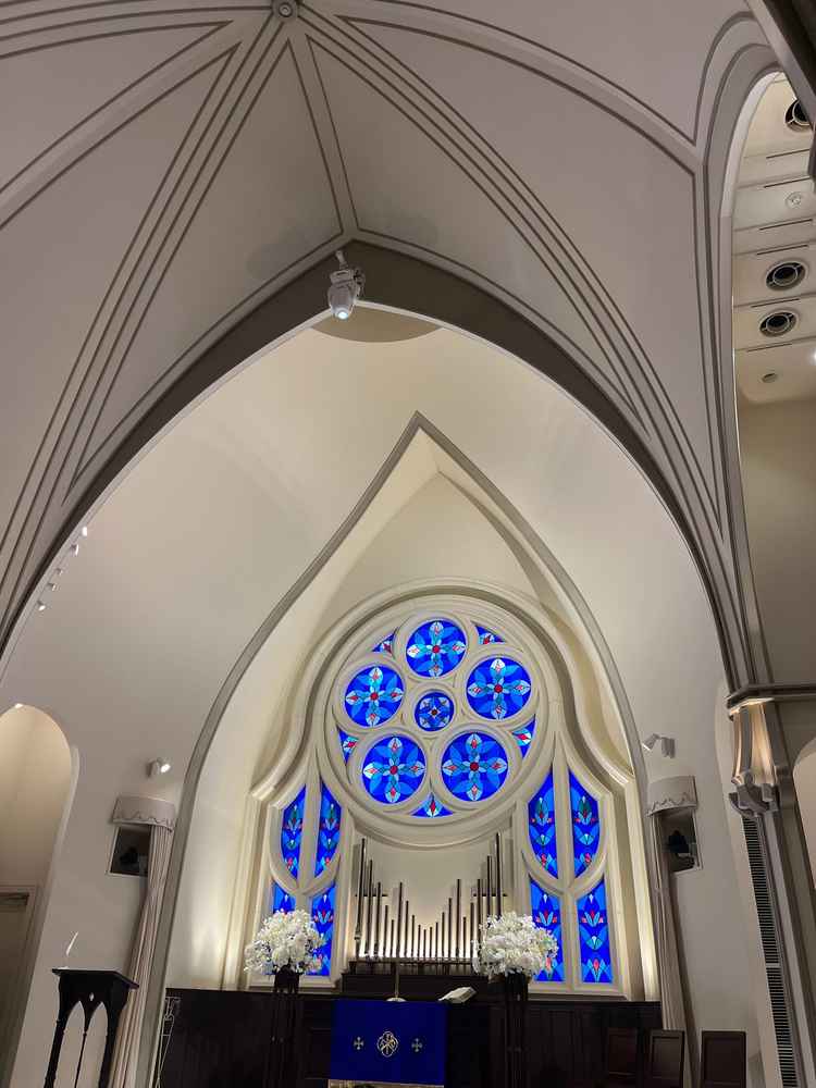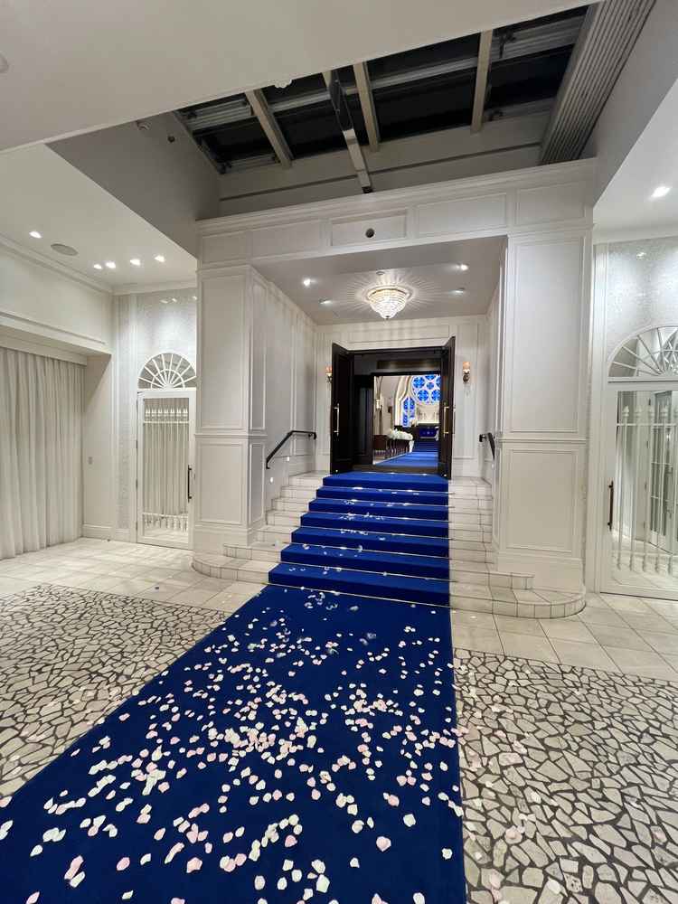 ウェディングドレスが映える ロイヤルブルーのチャペル