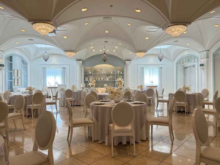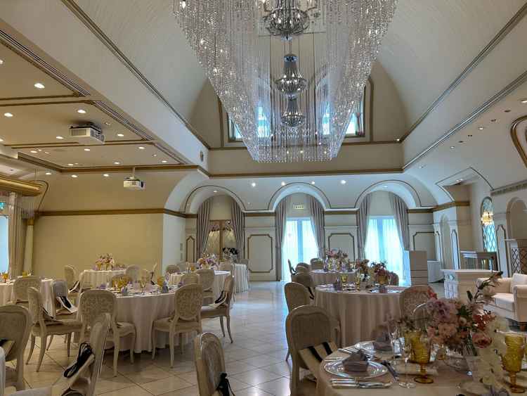 青と白で構成されたチャペルはとても素晴らしかった。披露宴会場も3つ種類があり、好みに合わせられるため良いと思った。