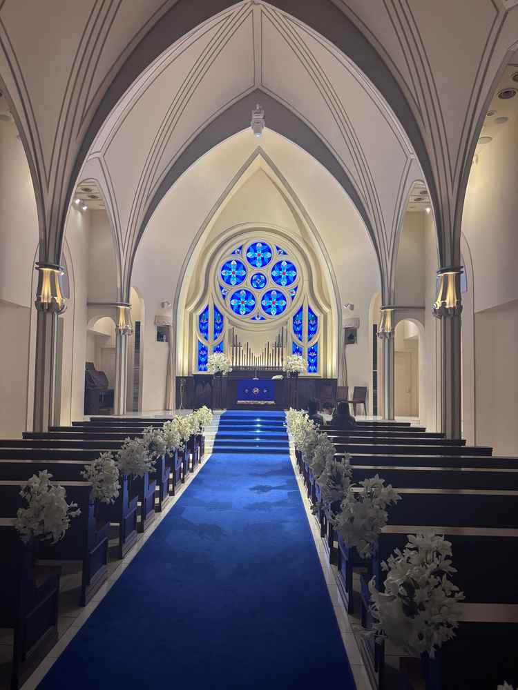 ウェディングドレスが映える ロイヤルブルーのチャペル