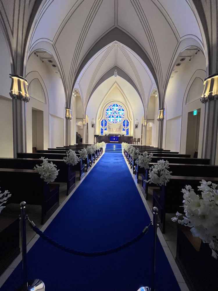 ウェディングドレスが映える ロイヤルブルーのチャペル