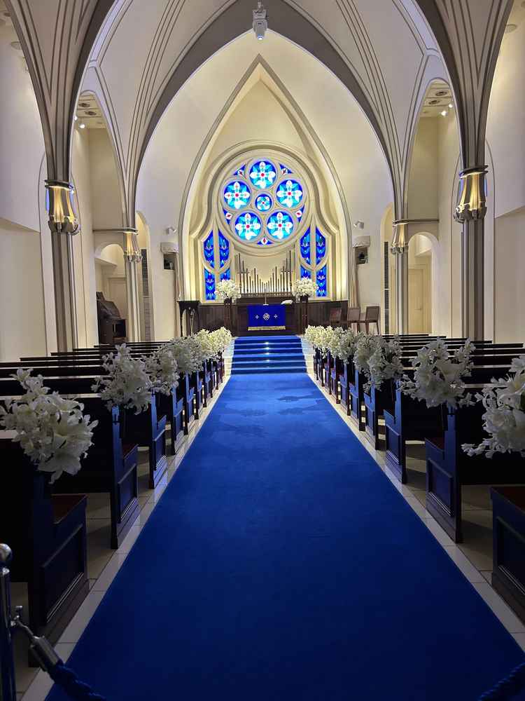 ウェディングドレスが映える ロイヤルブルーのチャペル