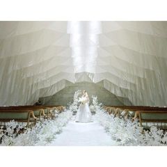 【唯一無二の『デザイナーズチャペル』で入場体験】◆幾重にも重なる白いヴェールと光が幻想的◆「初めて見るデザイン!」とゲストにも好評◆フェアでは、オリジナル演出の体験も◆大階段でのフラワーシャワーも叶う