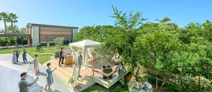 青空まですべて貸切にして行うバルーンリリースやピジョンリリース。フラワーシャワーやデザートビュッフェ、ウエルカムパーティなど。広々としたガーデンは自由自在に楽しむことができます。緑・水・空がどこまでも広がる開放的な空間で贅沢なひとときを