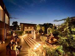 豊橋市街を一望できる丘の上だからこそ、眺望もおもてなしの一つ。上質な雰囲気で楽しむ大人のナイトパーティやキャンドルでの前撮りなどもおすすめ。キャンドルの灯が揺らめき、昼間とはひと味違うロマンティックなひとときを楽しめる。
