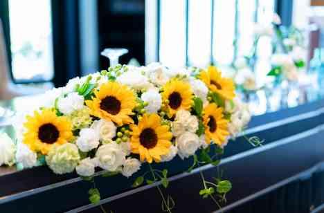 新婦様の大好きなひまわりを使った会場コーディネート!高砂もゲストテーブルもひまわりをたくさん使用し、夏らしさ満点でおふたりの笑顔にピッタリのコーディネートでした。またウエディングブーケもひまわりたっぷりに仕上げました。季節を感じられるコーディネートはとても素敵な空間となりました♪専属のフラワーコーディネーターとの打ち合わせでおふたりらしいコーディネートを創っていきましょう。