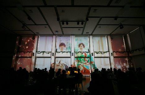 アールベルアンジェでは壁一面を使ったプロジェクションマッピングの演出が可能です!お二人の幼少期のお写真や、前撮りのお写真を入れて上映致しました。まるでテーマパークのような演出にゲストの皆様が圧巻!お二人の好きなお写真を入れて入場を盛り上げます!