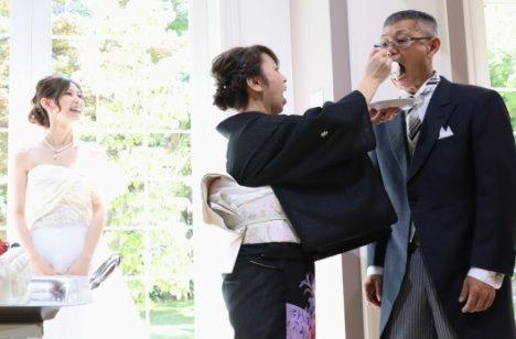 披露宴ではお二人だけでなくゲストも参加できるようにといろんな演出を考えられました♪その中でもご両親がウェディングケーキを食べさせ合う「お手本バイト」が盛り上がりました!結婚式だからこそ見れるご両親の姿にお二人も幸せそう♥