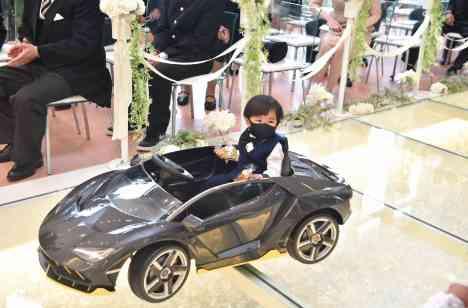 結婚式当日もおふたりのお子様が大活躍してくれました!なんと軽快な音楽と共に高級車に乗って登場!ゲストのみんなに囲まれてとても幸せそう♥しっかり重大な任務を果たしてくれました!挙式演出はたくさん種類があります。様々な演出を取り入れておふたりらしい結婚式を創りあげましょう♪
