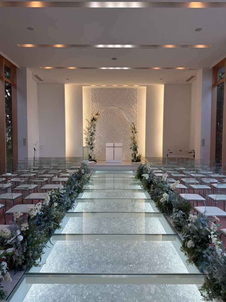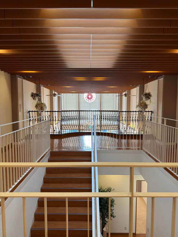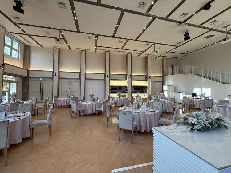 プロジェクションマッピングがとても良かった。 披露宴会場への入場の際に長めの階段があるのがいいと思った。