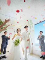 挙式後に行われるフラワーシャワーなどのアフターセレモニー。 天候に関わらず、空に近い特別な空間でお楽しみいただけます。お二人に降り注ぐ花びらや皆さまからの祝福の声とともに、お二人のこれからを明るく温かい自然光が照らしてくれます