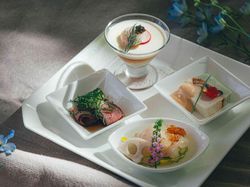 【プリフィックス】で40種類以上からセレクト定番のコース料理はもちろん おふたりの好みに合わせて料理をセレクト 流行の【お茶漬けブッフェ】や 【デザートブッフェ】を取り入れて 被らない演出もプラスしてご提供します♪