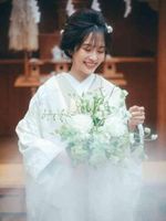 来館時には神殿での挙式体験はもちろん、衣裳確認も可能です。豊富な和装を取り揃える衣裳サロンが館内併設なので、衣裳重視のおしゃれ花嫁からの支持も高い。オリジナルスタイルを楽しみたい方は小物アイテムもぜひチェックして。掛下のカラー展開も豊富で見ているだけでも楽しめます