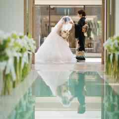 【自然光溢れるガラス張りのアクアチャペル!】圧倒的な開放感が魅力!扉が開いた瞬間の光を受けて登場する花嫁姿!プランナーが心温まるオリジナルの挙式をご提案!素敵な入場シーンを体験してみて♪