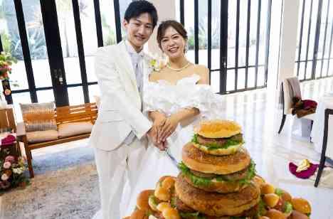 ケーキではなく巨大ハンバーガーに入刀しました。 ゲストからも「こんなの見たことない!」「すごい!」と言ってもらえて、ケーキ以外のものにしてよかったなと思いました! 二人でビッグハンバーガーにかぶりついたのもいい思い出です☆ このバーガーはデザートビュッフェの際にゲストのみんなに振舞いました!喜んでくれてよかったです。