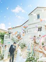 チャペルで永遠の愛の誓いを交わした後、エリアNo.1の大階段で行われるのは、花びらが風に舞う華やかなフラワーシャワー。開放感あふれる、空と緑に囲まれた空間はまるで別世界のよう。ゲストひとりひとりのお顔を見ながら進む時間をかみしめて。