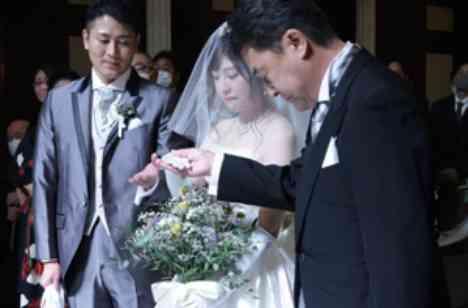 "花嫁の人生"を表すとされるバージンロード。大切な人と歩く道の先で行うオリジナルセレモニーが"確認の儀"です。牧師からの「花嫁の結婚式を心から祝福しますか」との問いにゲストの皆様を代表して「祝福します」と答えるお父様の表情や反応の全てに愛が溢れ、『家族の絆』『親の愛』を感じられる感動的な瞬間となりました。