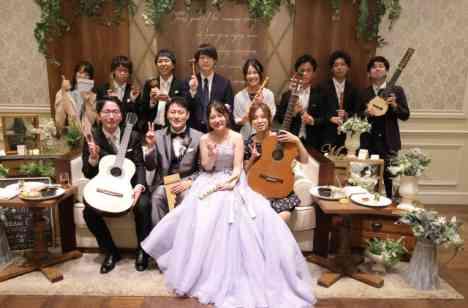 披露宴の中盤ではゲストと一緒に楽器演奏の演出を行いました。珍しい民族楽器も登場し、会場も大盛り上がり。その他ガーデンでのデザートビュッフェでは自然な姿でゲストと一緒に写真を撮ったり、お話ししたりして楽しみました。どこを切り取ってもゲストと一緒に過ごす時間を大切にしたとてもゲスト想いのおふたりでした。